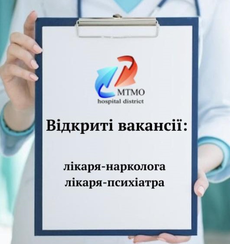 До дружнього колективу Ковельського МТМО запрошуємо на роботу лікаря-нарколога та лікаря-психіатра.